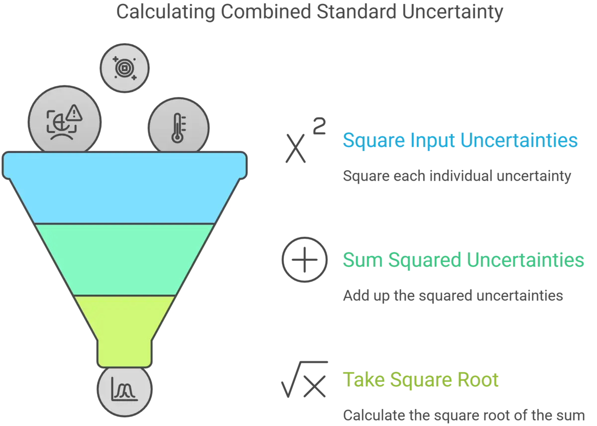 - Calculate the Combined Uncertainty – Calculate the square root of the combined variance