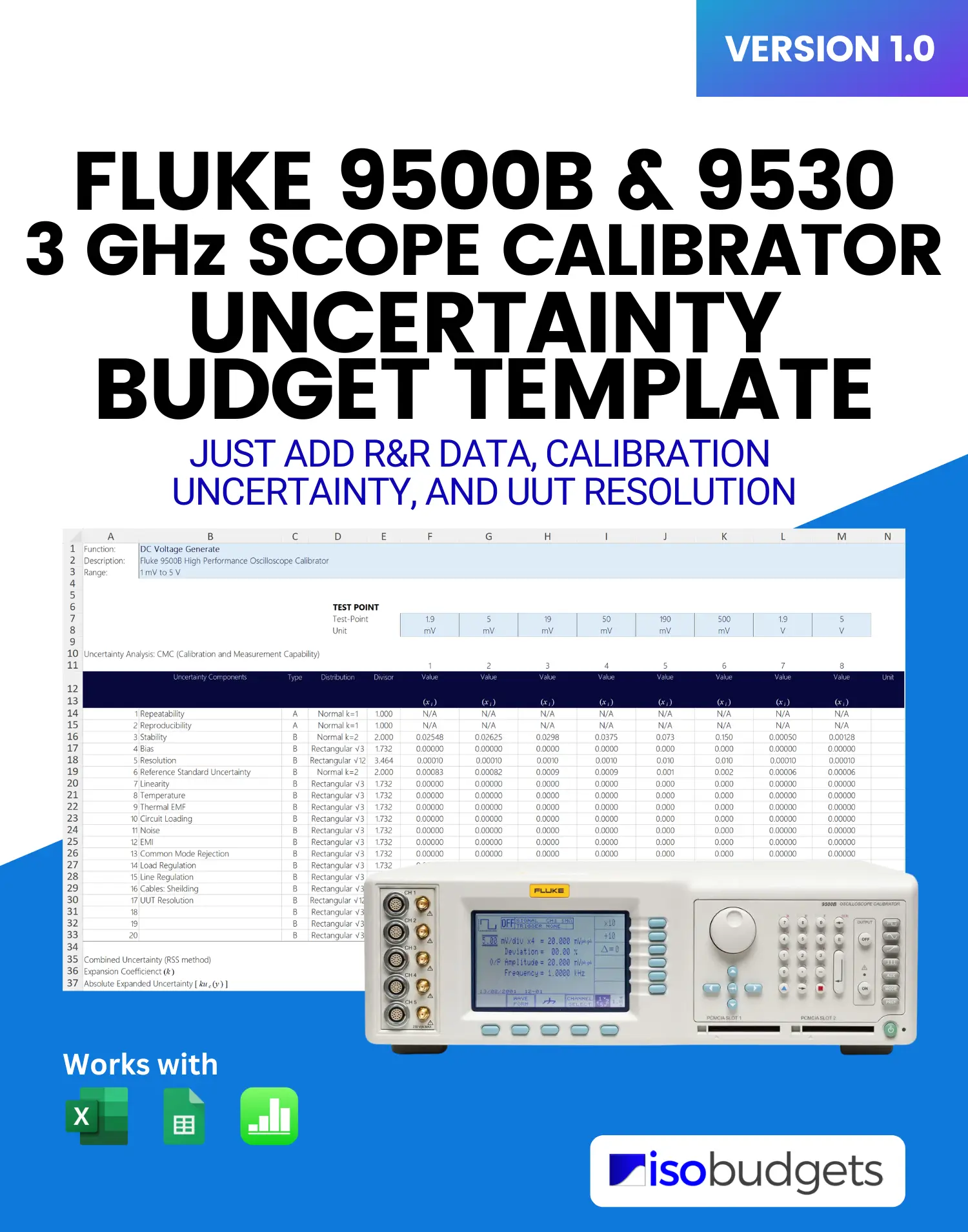 New – ISOBudgets Fluke 9500B Scope Calibrator Uncertainty Budget Template